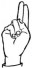 На ћирилици написано АЊА БАДРИЋ састоји се из 9 слова [?]. Исписано ћириличном једноручном азбуком за глувонеме:
